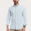 Camisa a rayas confeccionada en algodón. Cuenta con cuello clásico de botón, manga larga con puños simples y logo de la marca grabado en el frontal. Corte regular fit.