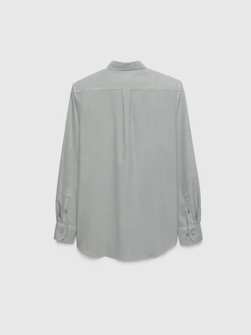 Camisa confeccionada en algodón con cuello clásico de botón, bolsillo en el frontal y manga larga de puños simples. Corte regular fit.