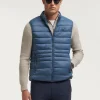 Chaleco acolchado con cuello subido. Dos bolsillo a la altura de la cintura, logo grabado en el frontal y sisa y cintura en punto elástico. Forro interior a contraste con bolsillos.
