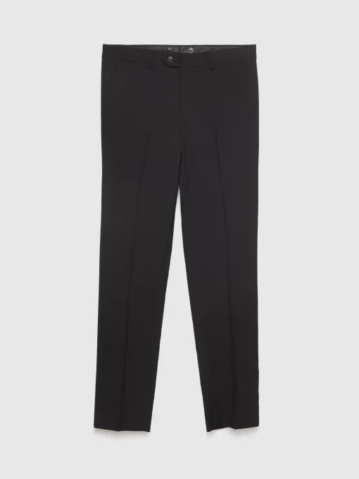 Pantalón de traje que cuenta con cierre frontal de cremallera y botones, dos bolsillos abiertos en la parte delantera y dos bolsillos traseros con cierre mediante botón. Forrado en su interior.