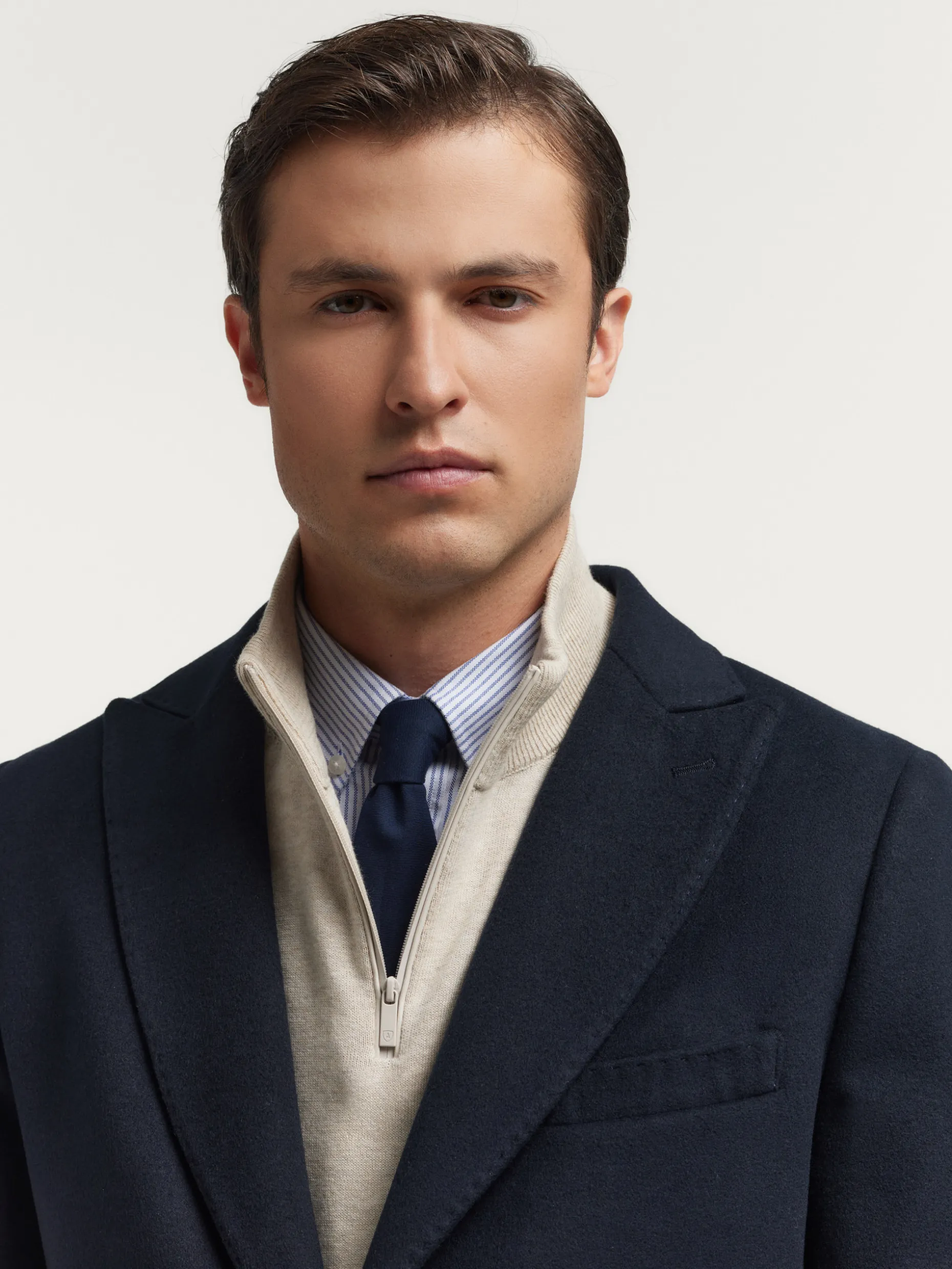 Abrigo con cuello y solapa, cierre central simple mediante dos botones y ajuste martingala en la cintura-espalda. Bolsillo en el pecho y tres bolsillos de solapa en la cintura. Manga con terminación de botones decorativos. Abertura en el bajo. Forrado en su interior con dos bolsillos.