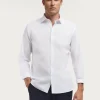 Camisa confeccionada en algodón con cuello de solapa, manga larga con puños simples y logo de la marca grabado en el frontal al tono. Corte regular fit.