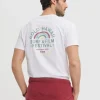 Camiseta con estampado personalizado a la altura del pecho y en la espalda. Cuenta con cuello redondo y manga corta. Corte regular fit.