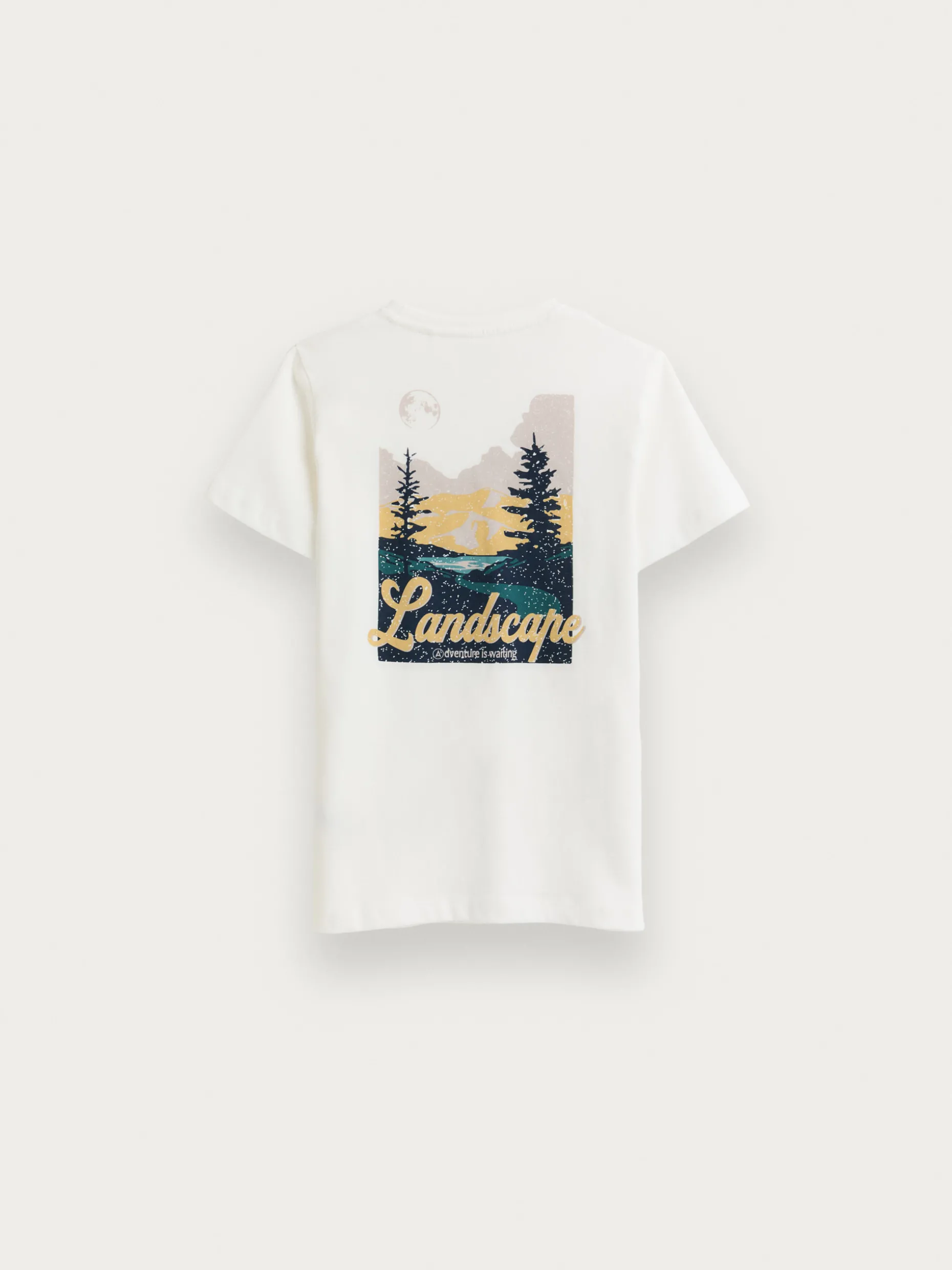 Camiseta confeccionada en algodón con estampado personalizado a contraste en el frontal y en la espalda. Cuenta con cuello redondo, manga corta y corte regular fit.