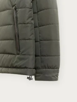 Cazadora acolchada con cuello subido y cremallera decorativa. Cuenta con cierre central de cremallera oculta por tapeta de botones a presión, manga larga con puños ajustables y dos bolsillos en la cintura. Parche en el pecho con el logo de la marca.