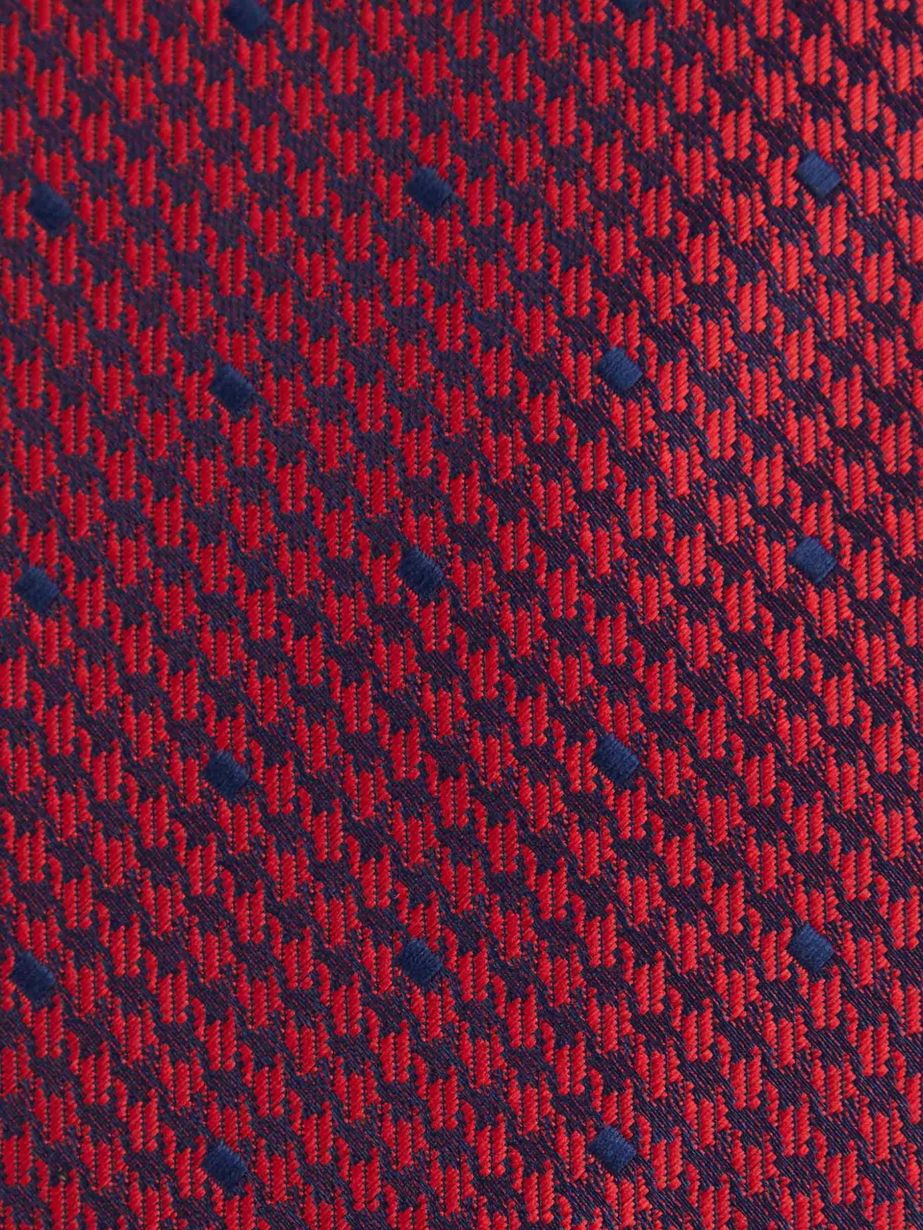 Corbata estilo jacquard con diseño estampado a contraste confeccionada en 100% poliéster. Cuenta con el logo de la marca grabado en el interior.