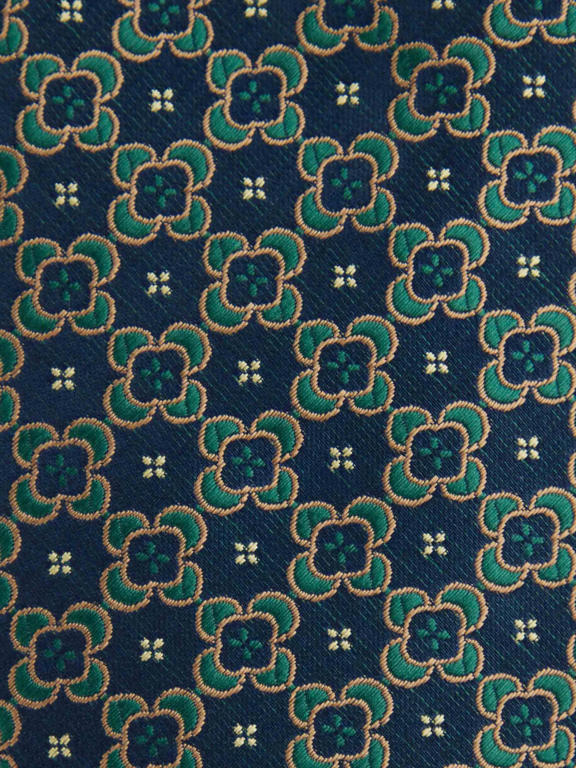 Corbata estilo jacquard con diseño estampado a contraste confeccionada en 100% poliéster. Cuenta con el logo de la marca grabado en el interior.