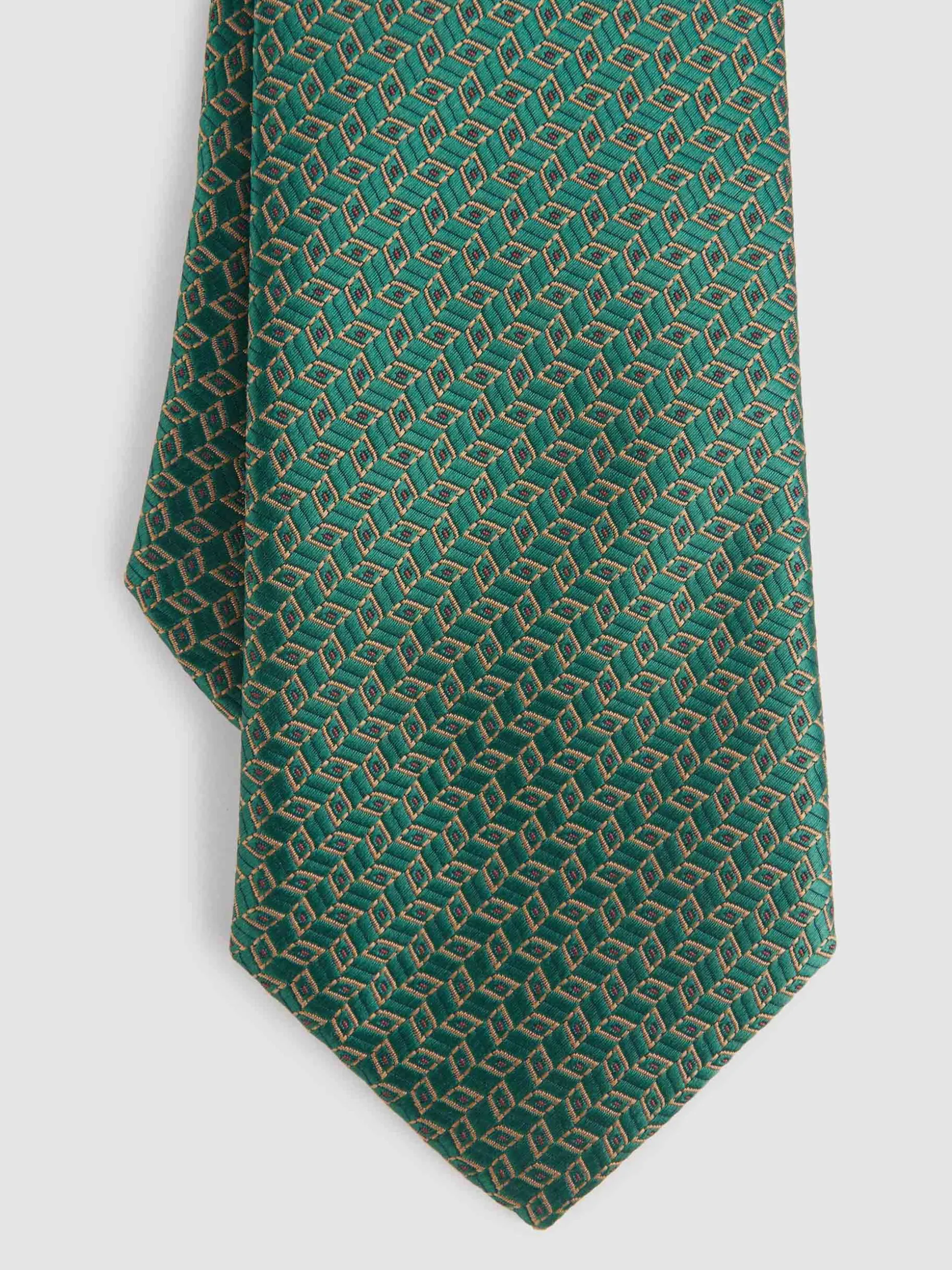 Corbata estilo jacquard con diseño estampado a contraste confeccionada en 100% poliéster. Cuenta con el logo de la marca grabado en el interior.