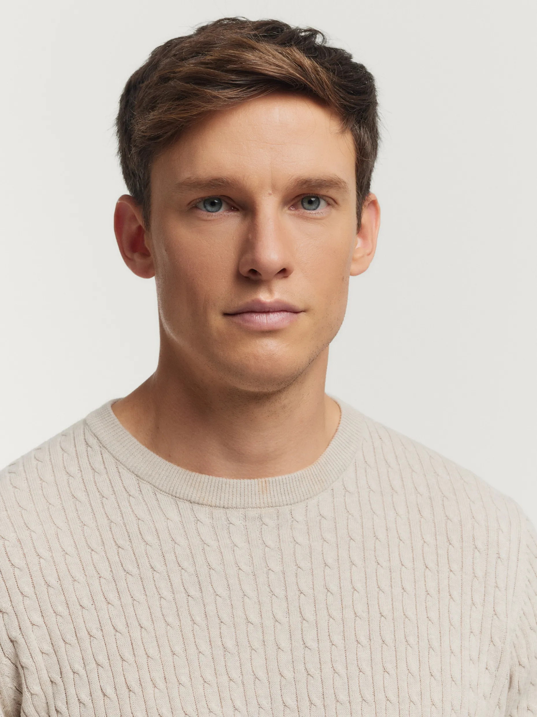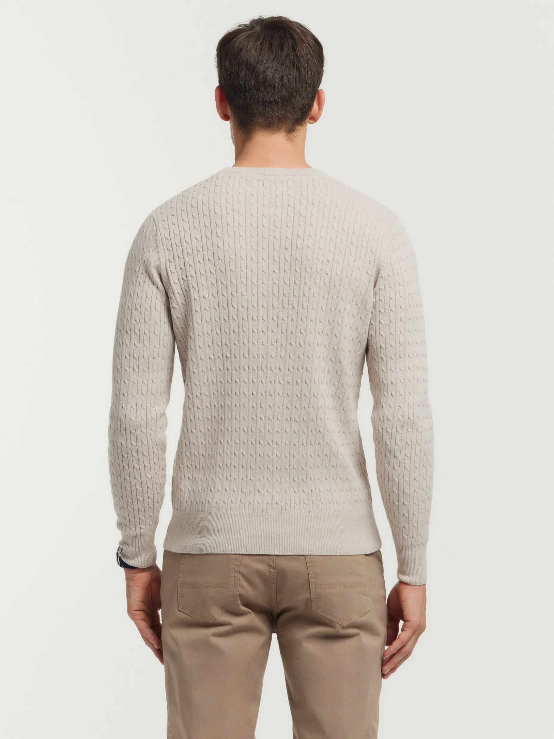 Jersey con estructura estilo ochos confeccionado en algodón. Cuenta con cuello redondo, manga larga y detalle metálico personalizado en el bajo. Cuello, puños y bajo en acabado ribeteado. Corte regular fit.