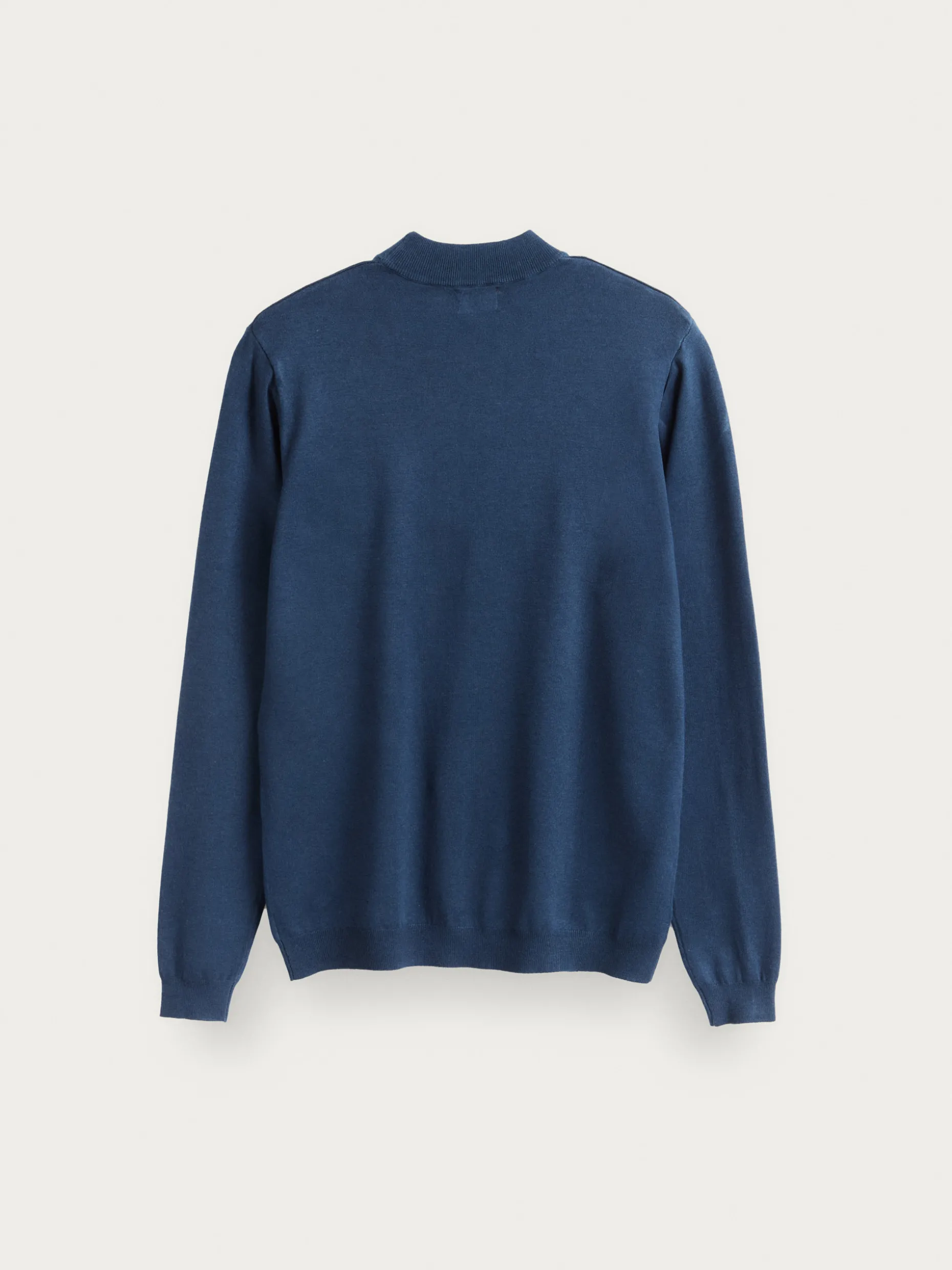 Jersey con cuello perkins y manga larga. Esta prenda de fina estructura, cuenta con detalle personalizado con el logo de la marca en el bajo y con sus puños, cintura y cuello ribeteados.